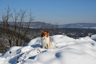 It was very cold and snowy this past week, but the sun came out on Friday and the promise of getting to take pictures of snowy landscapes under blue skies became irresistible. I climbed up to the lookout above Svatý Jan only to find it still in the shade of the surrounding hills as late as 10 AM. I decided to continue all the way to Karlštejn via Hostím and Srbsko.