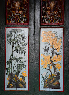 beautifully carved wooden decorations, and its giant statues of Guanyin, Buddha